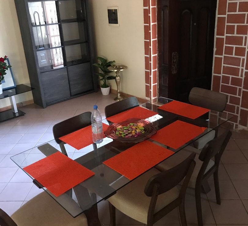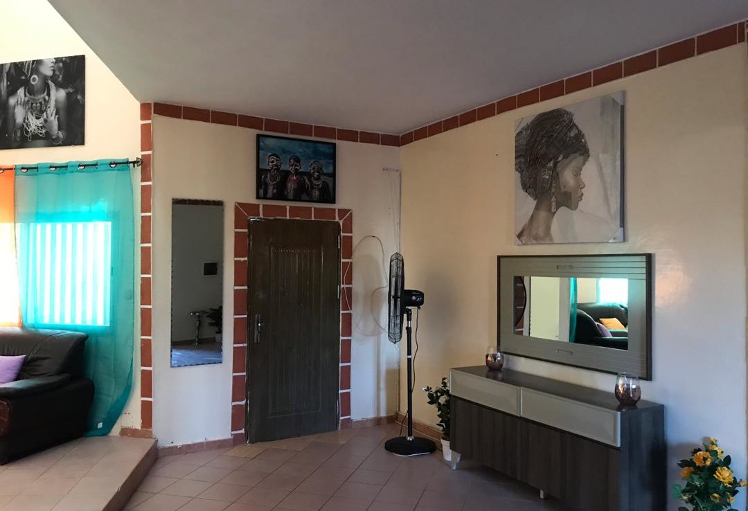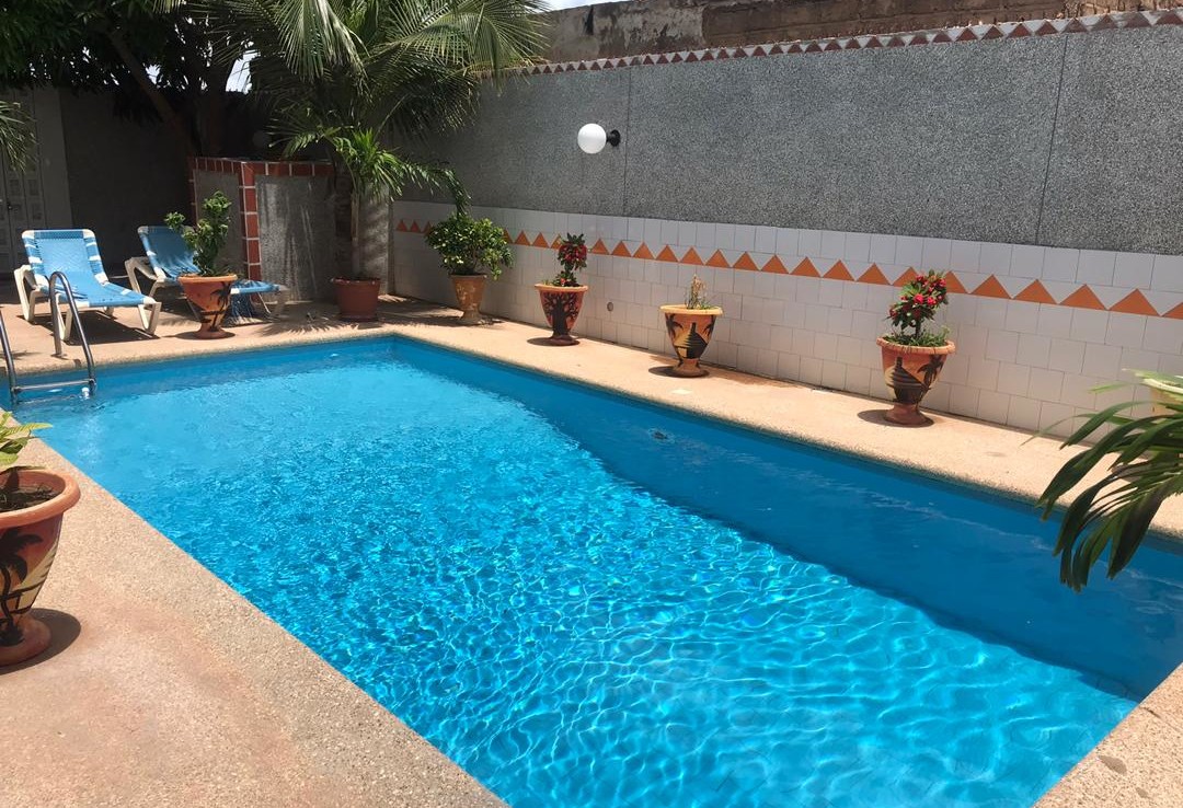 Belle villa composé de 4 chambres dont chacune avec salle de bain ( baignoire) , un grand salon spacieux, séjour ,cuisine , donnant sur la piscine et un garage ouvert , toilette visiteur a l’extérieur de la maison . La villa se situe dans un quartier calme de Saly non loin des commodités , a 100m de la route goudronnée . Elle est sécurisé avec un dispositif de détecteur de mouvement faisant office de camera de surveillance et sur toutes les issues des portes blindés renforcées avec grille en fer forgé.